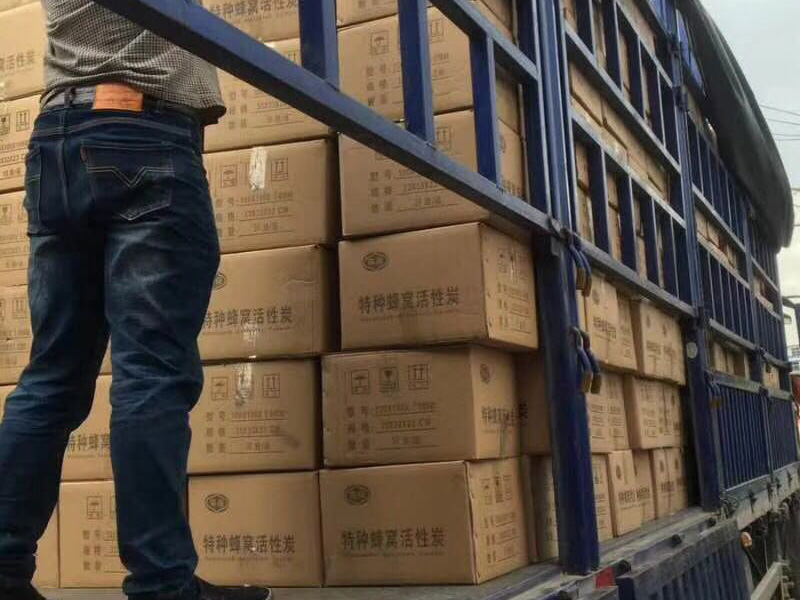 發(fā)往山西的70噸柱狀活性炭噸包裝車發(fā)貨